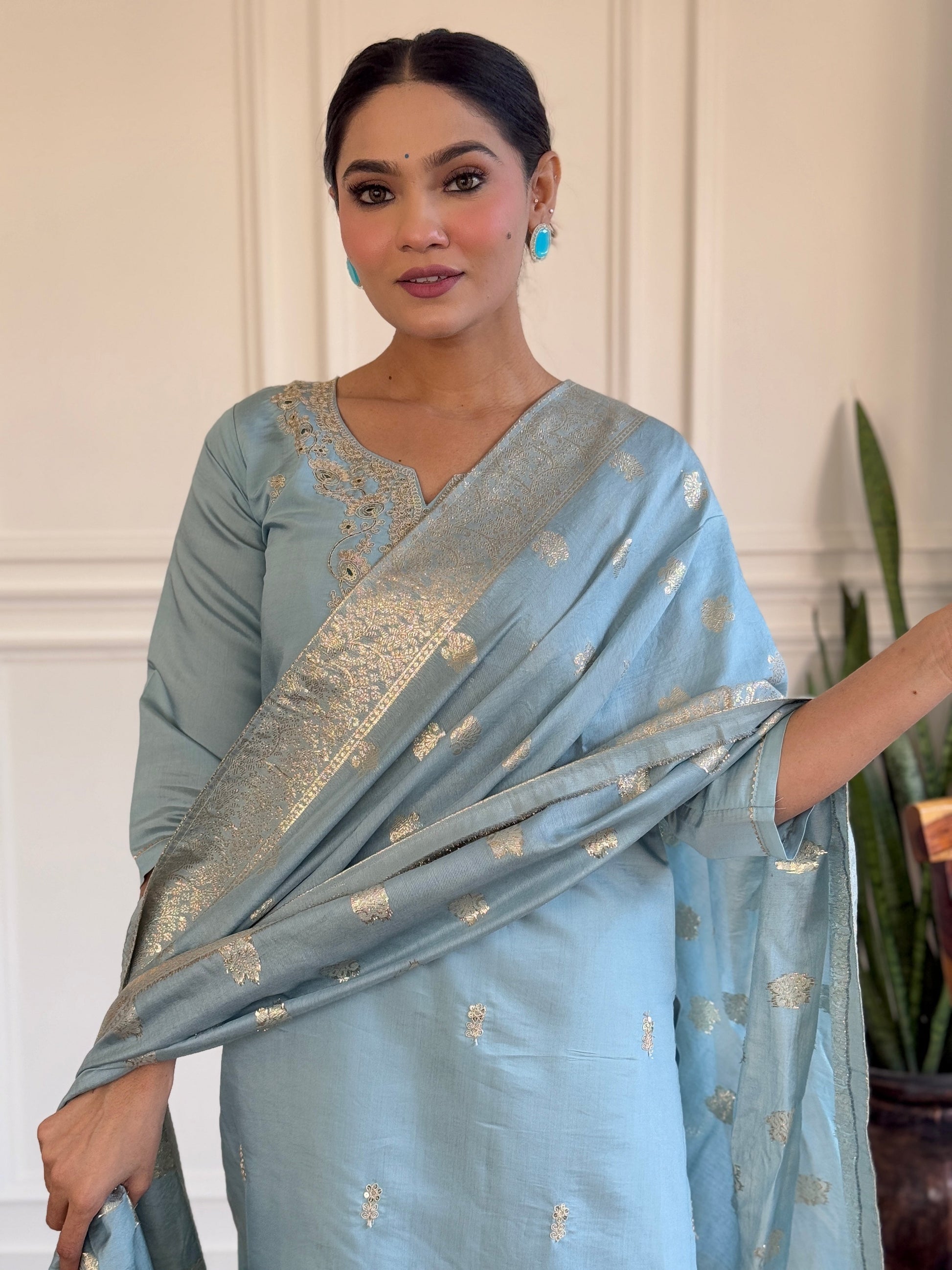 Product Details : ---------------------------------------- @ TOP - Stitched @ TOP Material: VISCOSE CHANDERI @ Kurti Length: 45 Inch @ Work : EMBRODAIRY @ Kurti Bust Size : Max Up To 44" ---------------------------------------- @ Bottom - Stitched @ Bottom Fabric : VISCOSE CHANDERI @ Bottom Waist Size : Max up to 38" @ Bottom Length : 37" to 38" ----------------------------------------- @ Dupatta - Stitched @ Dupatta Fabric : JACQUARD @ Dupatta Length : 2.20 m